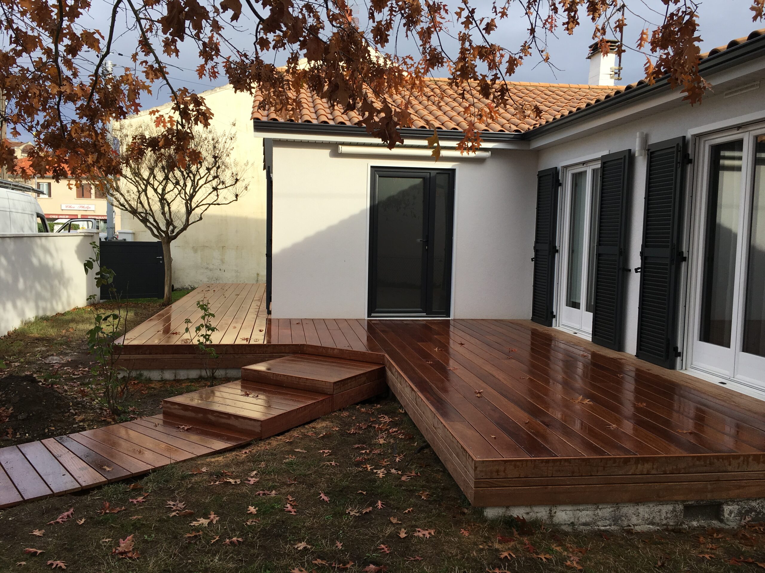 Nous proposons des terrasses en bois de haute qualité, conçues pour durer grâce à l’utilisation de quincaillerie en inox et d’une conception drainante qui assure sa durabilité. Nous utilisons du bois résineux traité autoclave et des bois exotiques tels que l’Ipé, le Cumaru et le Garapa pour offrir une grande variété de choix.